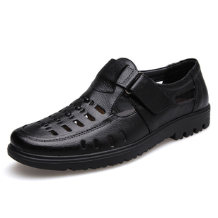 夏季男士中老年真皮休闲鞋凉鞋
